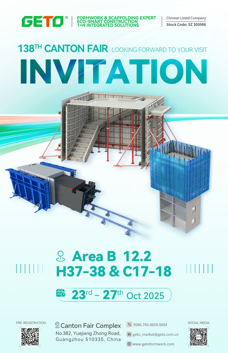 Octubre Dorado, ¡nos vemos en Cantón! La 138.ª Feria de Importación y Exportación de China (Feria de Cantón) se celebrará con gran éxito del 23 al 27 de octubre de 2025 en el Complejo Ferial de Cantón. GETO New Materials le invita cordialmente a visitar nuestro stand y explorar juntos las últimas innovaciones en la industria de la construcción y las nuevas oportunidades de cooperación global.